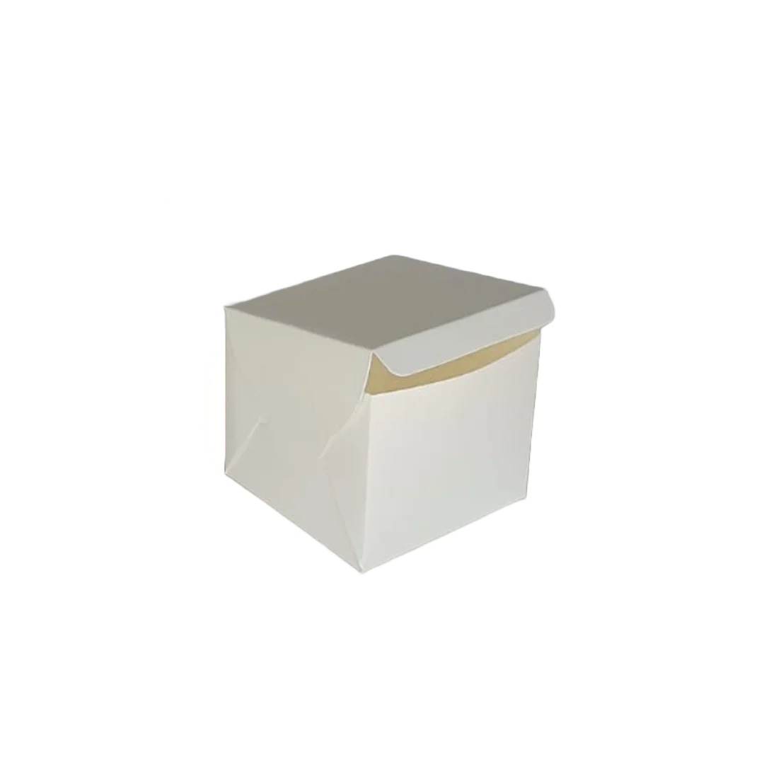 4x4x3.5 Inches White Paper Box without Window is Perfectly designed for takeaway single pastries , small dry cake, multi snacks and other bakery desserts. Even white tone on all sides & made up of SBS paper. Eco Friendly & recyclable. It comes in Flat version with easy assembly option so always makes the area clutter free & good in stacking. Brand sticker can be pasted on top for easy visibility.